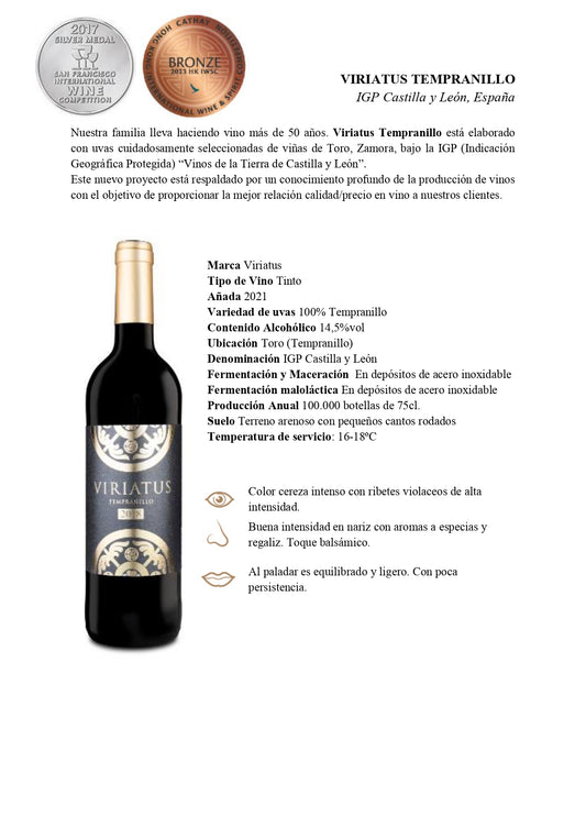 VIRIATUS TEMPRANILLO TINTO - 12 BOTELLAS